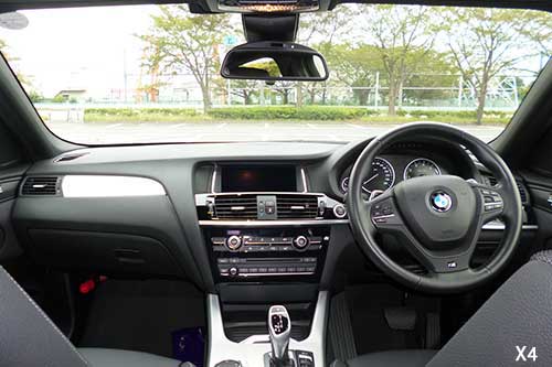 前述のようにセンタークラスタートップの液晶ディスプレイは異なるが、その下にエアアウトレット、エアコン操作パネル、そしてオーディオという配置は変わらない。ただし X4 は BMW の仕来りに従って極力ユニットを薄くして上部に固めている。