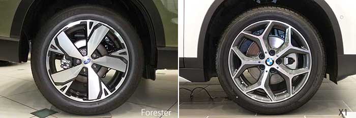 タイヤサイズはフォレスター アドバンスは 225/55R18 、X1 は M スポーツの為に 225/50R18 が標準となっている。なお X1 のベースグレードでは 225/55R17 となる。