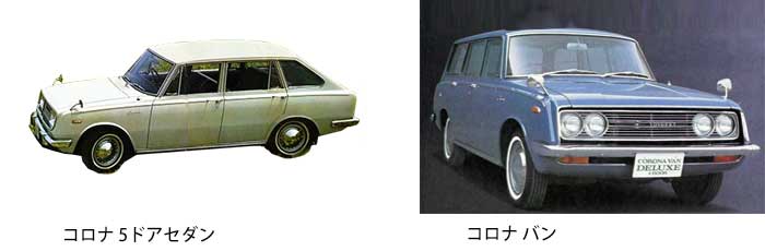 ではコロナはというと、こちらは乗用車を元にした商用車登録のバンだった点ではクラウンなどと同様だったが、コロナには別途の5ドアセダンと言うハッチバックのモデルが存在した。これは当時としては中々の見識だったが、世の中では全く受け入れられ無かった。