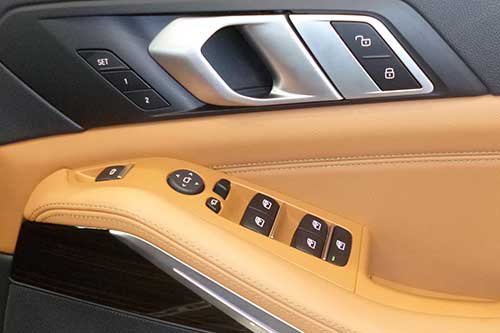 ドアのインナートリムは X5 がEセグメントである事を考えれば充分な高級感を持つのも当然と判る。取り分け内装色が標準の黒以外 (オプション) を選択していると写真下のように2トーンとなり華やかさが増す事になる。