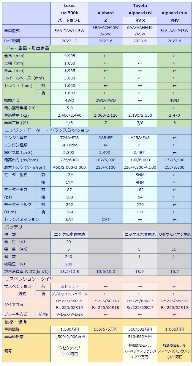 いや、その前にLMはハイブリッド車(HV)で、アルファードはガソリン車、HVに加えてプラグインハイブリッド車(PHV)と全てが揃っている。