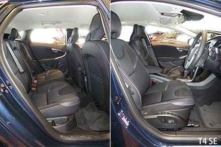 T4とT4 SEのインテリアでの最大の違いはT4のシート表皮がTextile(ファブリック)であるのに対して、T4 SEはT-Tecという人工皮革とファブリックのコンビであることだが、下の写真のように部分的に人口皮革を使っている程度で、それ程大きな違いとう訳でもない。