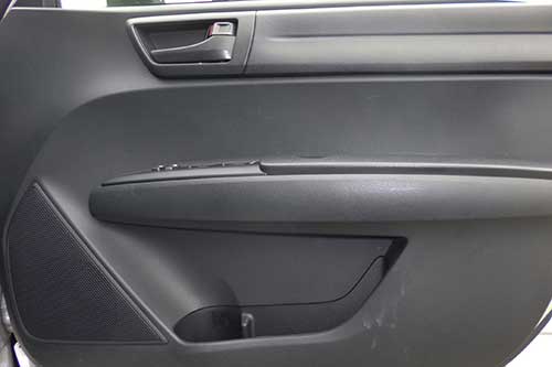ダッシュボード右端にはサイドミラー調整スイッチと共に引き出し式のコインホルダーがある。ダッシュボード自体は如何にもパッドという感じで見かけは結構良いが、触ってみれば全てが硬質樹脂だった。 ドアに付くアームレストには世間の常識通りにパワーウィンドウやドアロックなどのスイッチがあるが、ドアトリム関連部品ではこの部分のみ少しは質感が良いのは比較的目に入りやすいからだろう。