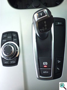 現行3シリーズとは違い、5シリーズと同様のスイッチタイプの電子式ATセレクター。