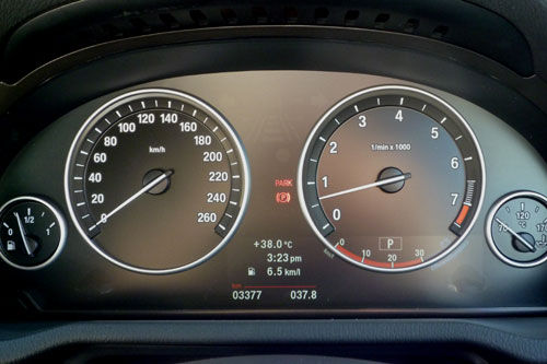 5シリーズとほぼ共通なメーターの配置で、3シリーズとは全く異なる。