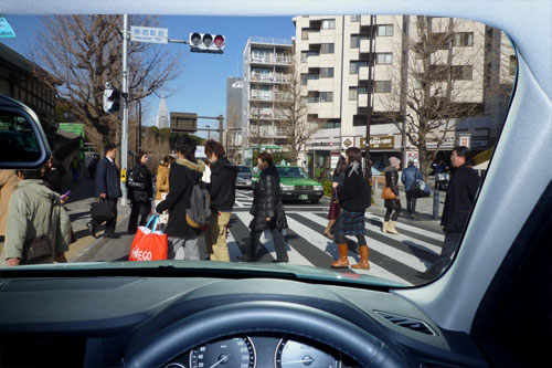 が切れたところで軽めのステアリングを左に切りながら発進すると、歩道との段差で突き上げを食らう事も無く、また柔らかいサスと高い重心でボディが左右に揺れる事も無く本線に進入する。