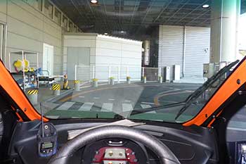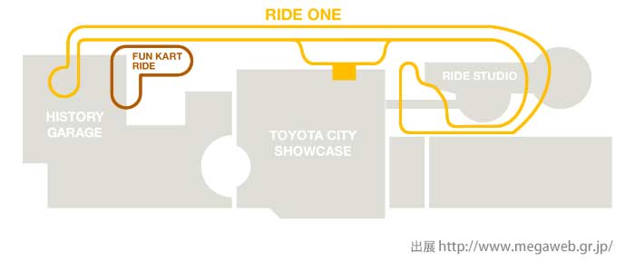 今回の試乗は公道上ではなくトヨタが運営するクルマのテーマパークで東京お台場にある MEGAWEB 内のコースを2周りするライドワンで実施した。ここは今回の試乗コースとともに現行トヨタ車約60台を展示したショーケース、そして旧車の展示などを行っているヒストリックガレージなどがある。何故コムスの試乗をメガウェーブで行ったかといえば、一般のディーラーにはまず試乗車は無いだろうし、イベントなどで試乗出来たとしてもこれを公道上で運転する勇気は持ち合わせていないという2つの理由からだった。 受付で手続きを済ませてから試乗まで30分位時間があったので、併設されている巨大なショールームであるショーケースに展示中のコムス B-COM デリバリーを見ておく事にした。やがて時間が近付いたので再度受付付近で待っていると他の試乗予定者も集まってきて、スタッフによる簡単な説明の後にコースに出て自分のクルマを探すと一番先頭にチョコンと小さいのがいた。ライドワンの試乗は1回300円で、原付扱いのコムスも、その2台後ろに止まっているセンチュリーも同じ300円で、何やらひどくそんをした気分になる。