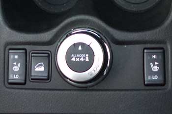 コンソールの後部にはダイヤル式の 4WD モードスイッチという、その名の通りで4WDモードを切り替えるものがあり、1輪がスリップしても駆動力が失われない要はデフロックの ”ロックモード”、走行状況で自動的に前後配分が変わる ”AUTO モード” 、そして燃費重視でFWD走行する ”2WD” モードの3つを選択出来るが、今回は全て AUTOモードで走行した (写真37) 。 ところで、この手の4WD走行モードはクロスカントリー車では当然のように付いていたから、エクストレイルのようなナンチャってオフローダーでも悪路走行用にデフロックを装備しているのは、この分野で経験の深い日産らしい発想だ。と、持ち上げておこう。 |