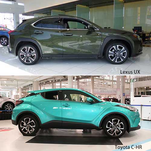 というように、基本的に同じプラットフォームの SUV に関わらず、エクステリアの雰囲気は大いに異なるが、良く見ればやっぱり兄弟であることが判ってしまう部分もある。いやそう言う目で見るからで、事情を知らなければ判らないだろう。この辺は流石に世界のトヨタで、大衆向け(と言っても300万円くらいするが)の C-HR とプチセレブ向けの UX を上手く作り分けている。 |