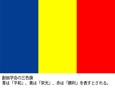 こんな旗のがある事は信者以外は誰も知らない、というくらいに認知度が低いが、赤・青・黄じゃあ、まるで信号機だ(笑