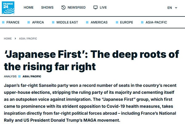 フランス24:「日本第一」:台頭する極右の深いルーツ
