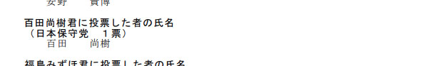 その1ページ目を見ると、「高市早苗君に投票した者の氏名」が公表されている。
