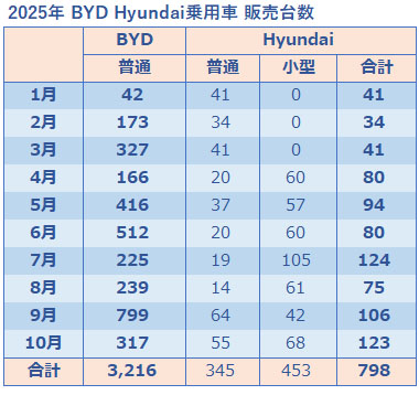 何時ものようにBYD、そしてHyundaiの状況をまとめると