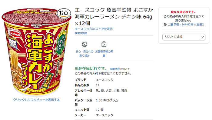この投稿により、このラーメンはあっという間に日本中で売り切れ状態になった。因みにAmazonで調べたら、しっかりと「現在在庫切れです。」と表記されていた。