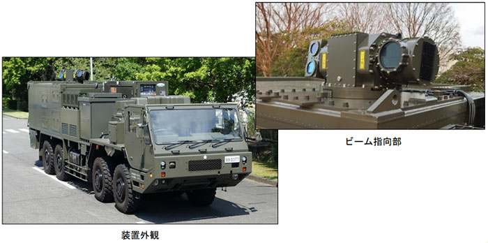 車両搭載高出力レーザーシステムは4軸の大型トラックシャーシーにシステムを搭載したもので、近年脅威が増大している複数の連携する小型ドローンを用いた攻撃などを含む脅威への技術を確立する為の試作であり、令和6年10月に完成した。