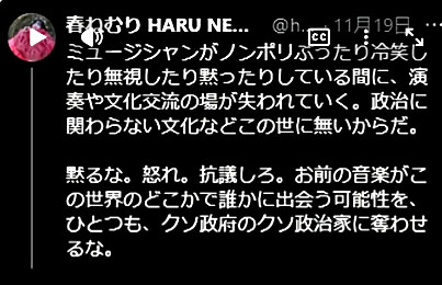 そしてもう一人は「春ねむり」というシンガーソングライターで、同じくXで過激な投稿をして話題となったが、そのⅩで探したが既に見当たらなかった。しかし、ネットというのは一度アップしたら二度と消すことはできないのが怖いところで、既にコピーが出回っている。