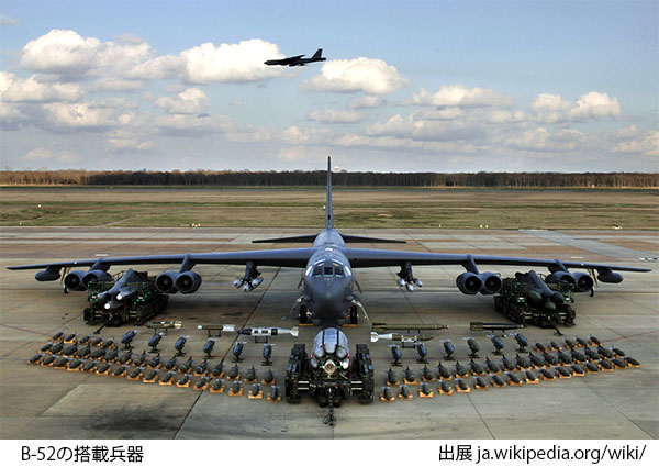 B-52は空中発射型の巡航ミサイル(ALCM、核弾頭装備)を主要兵装とし、正に「番長」登場というところだ。