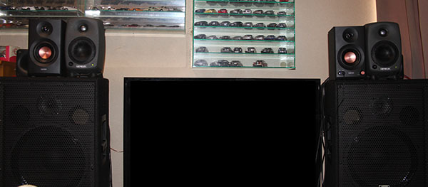 しかしその後、30㎝ウーハーとホーンツイータを備えたメインのシステムと比べるために、より離れた位置(2ⅿ程度)からの視聴を行ったところ、音量を上げるとMR3の限界を暴露した結果となった。