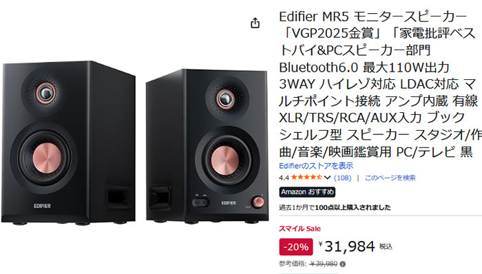 中華製の小型ニアフィールドモニタースピーカー(Edifier MR3)を買ってみた結果、そのコスパの良さを実感したが、同じメーカーであるEdifierの上位機種であるMR5の評価が極めて良い。