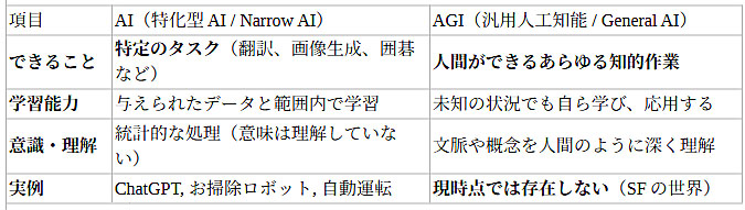 最近はAIではなくAGIという言葉をよく見かけるようになった。これはAIとどう違うのだろうか。