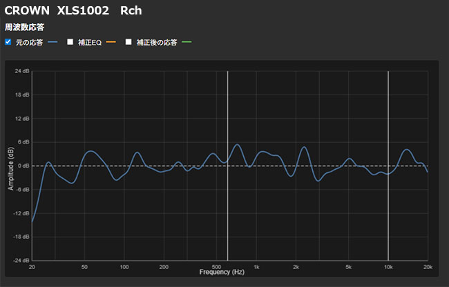 基本的な音質が落ち着いたので、今度は周波数特性を測定し、そのデータを見ながら少しづつグラフィックイコライザを調整していった結果、下記のような特性に落ち着いた。なおこの特性はサブウーハーも使用している。