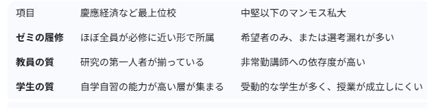 文系学部、特に慶應経済のような伝統校では、教育のスタイルを明確に使い分けている。
