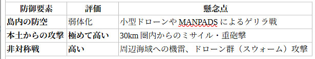 • 精密砲撃・ミサイル:本土に配置された長距離砲や多連装ロケット、精密誘導ミサイルが島全体を射程に収めている。米軍が島を占領したとしても、本土からの絶え間ない砲撃にさらされる「標的」になるリスクがある。