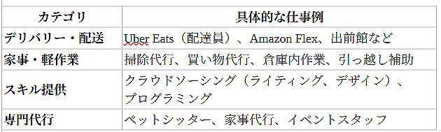 • プラットフォーム利用:アプリやサイトを通じて仕事を探し、報酬を受け取る。