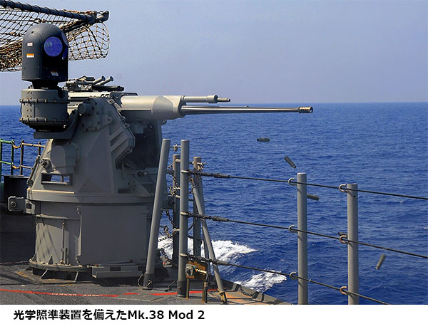 • Mk 38 25mm 機関砲:遠隔操作式の機関砲で、赤外線センサーを用いてボートを精密射撃する。
