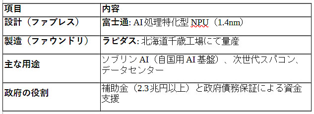 • 「設計から製造まで」の国内完結:これまで設計(富士通)と製造(TSMCなど海外)が分断されていた先端半導体において、「純国産」のサプライチェーンを確立する。