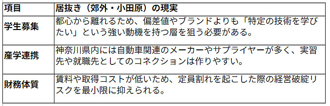 小田原市のキャンパス、実は旧関東学院大学法学部キャンパス(小田原キャンパス)で、2017年の撤退以降、維持費がかさむ「負の遺産」となりつつあった。自治体としても跡地利用は喫緊の課題であり、学校法人がそのまま利用してくれるのは渡りに船だった。