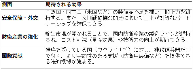 この改定によって期待されている主な効果は、単なる「武器売買」ではなく、外交・産業の両面にわたることだ。