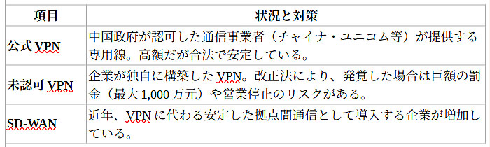 グローバル展開している企業にとって、VPN規制はビジネス上の深刻なリスク(チャイナ・リスク)と見なされている。