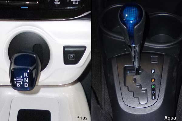 アクアではオーソドックスなジグザグゲートで世間の AT 車の多くがこの方式だから AT の運転経験があれば操作に戸惑う事は無いだろう。