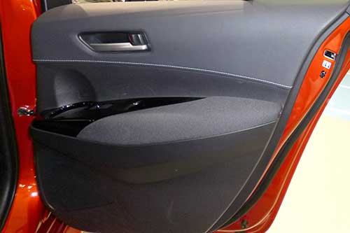 因みにハッチバックのスポーツはというと、写真下はオプションのツートーンのインテリアを装着しているから随分派手だが、基本はセダンおよびツーリングと変わらない。 なおドアそのものも3車種で共通のようだ。
