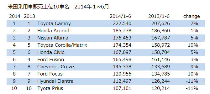 今年(2014年)上半期の米国小型車販売台数が発表された。 そこで、昨年同様に先ずは上位10社を見てみる。なおデーターは例年どおりに米国のAutomobile Newsによる。