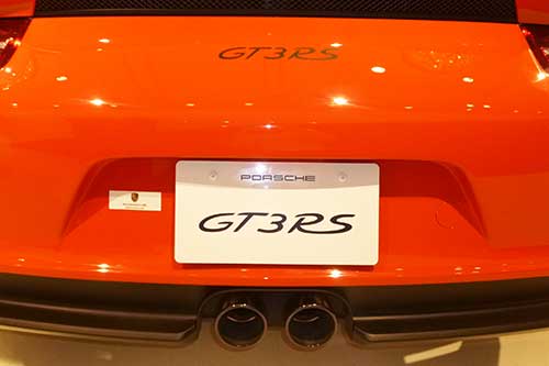 リアに ”GT3RS" というエンブレムがあるのは当然だが、何故か GT4 にはある ”PORSCHE" のロゴマークがついていない。