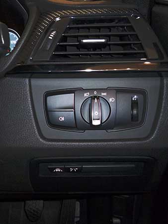 コンソール上にはAT セレクター、走行モード切替スイッチ、そして iDrive のコマンドダイヤルが並ぶという点では4シリーズクーペと同様だが、DCT のセレクターはトルコン方式とは全く異なるパターンとなっているのは M5や 旧M3 などと共通している。 ダッシュボード右端はドイツ車ではお馴染みの回転式のライトスイッチがあり、この点では4シリーズクーペ、というよりも他の BMW 各モデルと同様となっている。