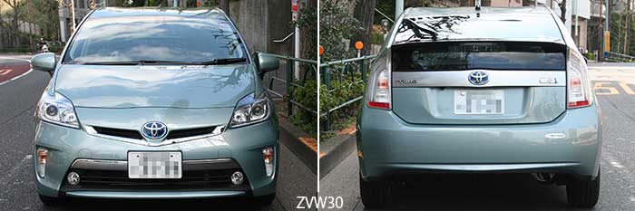 そこで先代 (写真下) と比べてみると、やっぱり先代は腰高感がかなりあり、これではお世辞にもスタイリッシュとは言えなかった訳だが、逆にそれがプリウスの特徴だと思っていたくらいだ。