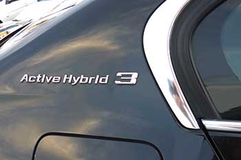 表を見るとActive Hybrid 3と5ではパワートレインが全く同じであり、さらに電気式モーターを取っ払ったエンジン部分は535iとも同じであることが判る。要するにハイブリッドといっても、元々高性能モデルである335i (現在国内販売なし)や535i に更に電気モーターのアシストを加えたより高性能なモデルであり、日本車のハイブリッドのように燃費を第一にしている訳では無さそうだ。表を見れば燃費ではディーゼルの320dのほうが良い結果となっていて、経済性を重視するならば320dが正解ということになってしまう。しかも、価格差は230万円もある! これは5シリーズでも同様で523dの燃費は16.6q/LでActive Hybrid 5の13.6q/Lよりも勝っている。 ハイブリッドによる重量増は1,820sの535iにモーターやバッテリーを追加したActive Hybrid5が1,960sだから、その差は140sであり、これが重いか軽いかを判断するために米国ではライバルであろうインフィニティM35h(フーガ ハイブリッド:1,840kg)とM37(フーガ 370GT:1,720kg)の差を調べれば、120kgだからハイブリッド化による重量増加はActive Hybrid 5と大して変わらない。そして、フーガのモーターは68psだから、BMWと比べて電気系の容量も似たようなものだ。なお両車とも小型軽量のリチュウムイオン電池を採用しているから、この面での違いも無さそうで、結局両車とも妥当なところか。 なお、米国での価格(MSRP)はActive Hybrid5が61,400ドルからに対してM35hは54,750ドルであり、日本ほどではないがBMWは結構な高値だった。 今回の試乗は3シリーズのActive Hybrid 3と5シリーズのActive Hybrid 5を一気に実施した。そこで車両の紹介として、先ずはActive Hybrid3から始める。 外観上はガソリンもしくはディーゼルの3シリーズとひと目で分かるような違いは見当たらなかった。現行3シリーズの場合は、ベースグレードの他にMODERN / LUXURY / SPORTという3種類のデザインラインがあり、エンジンの違いよりもむしろ、このデザインラインの違いで外観上が多少異なるため、デザインラインが同一ならばハイブリッドモデルも直ぐに見分けがつかない。 |