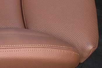 ドアを開けて見えるインテリアはActive Hybrid 3と同様で、やはりハイブリッド独特のものは見当たらない。3シリーズのようにデザインラインという概念が無い5シリーズの場合はベースグレードである523iおよび523dのみシート表皮がクロスで、それ以上はレザーシートが標準となっている。勿論Active Hybrid 5は535iの上級モデルであるから、内装の質も文句なしに良い。更に、写真のクルマはオプションのベンチレーションシートが装着されていたために、シート中央部はレザーに細かい通気穴が開いている(写真27)。なお、乗り口のドア・シル・プレート(サイドスカットルプレート)には"Active Hybrid 5"のゴロがあるのは3シリーズと同様だ(写真28)。 |