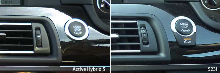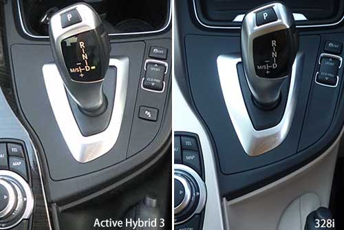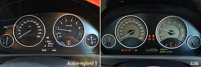 それでは、引き続きActiveHybrid3に乗ってみる。 ActiveHybrid 5から乗り換えると当然ながら室内は多少狭いし、インテリアの質感も多少落ちるのは単に5シリーズと3シリーズの車格の違いだが、こうして時間差無しの乗り比べでは結構その差が気になってしまう。そしてエンジンを始動してさて発進となって、パーキングブレーキはといえばオーソドックスというか、時代遅れというか、コンソール上のレバー式はハイテク車の代表であるハイブリッドモデルとしては多少白ける。最近FMCしたVWゴルフが5シリーズにそっくりの電気式パーキングブレーキを標準としているのを見ると3シリーズの設計自体の古さが目についてしまう。とっても、昨年初めにデリバリーされたF30は決して古い車ではないのだが‥‥。 ActiveHybrid 3のパワートレインは直前に乗ったActiveHybrid 5と全く同じだから、違いは基本的にボディのみであり、その重量差は5の1,960sに対して3は1,740sと、何とその差は220sもある。それで、実際に走り出してみると強烈なトルク感のあったアクティブ 5に比べても、同じパワートレインで200s以上も軽いアクティブハイブリッド3の加速は凄まじい。勿論、基本的な特性は全く同じだのだが、スペックを見たただけでもその重量の違いに驚くのだから、立ち上がりトルクの強力な電気モーターの恩恵によるトルク感は正に圧巻だ。と、思ってよくよく考えたらば走りだしたばかりなので、走行モードは当然ながらデフォルトのCOMFORTであり、それならとSPORTに切り替えると、これはもうちょいと踏むと5,000rpmくらいまで加速してしまうし、べた踏みすれば6,000rpmまでも訳なく吹け上がる。ここで、気が付くのは同じパワートレインとはいえ、フル加速でさえも控えめで、通常走行では殆どエンジン音が聞こえなかったアクティブハイブリッド5に比べて、こちらはある程度の排気音を強調しているし、フル加速では伝統的なBMWのボーッというエンジン音が聞こえてくる。先ほどActiveHybrid 5の試乗でも以前の6気筒のシルキーシックスを思い出したと記したが、3の場合はもっと確実にE46時代の330iを思い出すような性能と音だった。 |